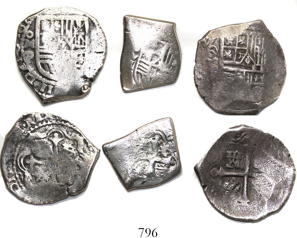 Lot of 3 Mexico City, Mexico, silver-cob minors: 4R (16)2(?) and 1652(?)P, and 2R Charles II assayer L. 35.20 grams total. Fine overall (some weak spots), with decent details including partial dates and assayers.