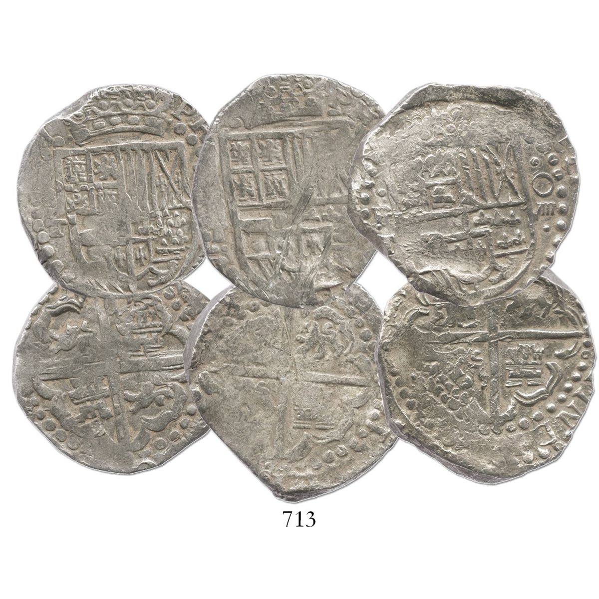 Lot of 3 Potosi, Bolivia, cob 8 reales, assayer T (mid- to late 1620s), one with lions-castles trans