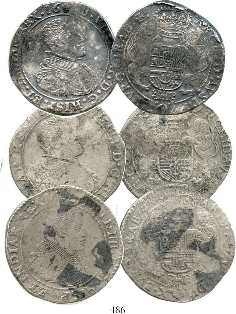 Lot of 3 Spanish Netherlands portrait ducatoons of Philip IV, various partial dates. 93.8 grams total. Nice detail (just without 100% readable dates), two with corrosion, the third uncorroded but with part of edge bent, nice mix of mints (Antwerp, Brussels and Flanders). With certificates from the salvager (Stenuit). From the Slot ter Hooge, sunk in 1724 off Porto Santo, Madeira Islands