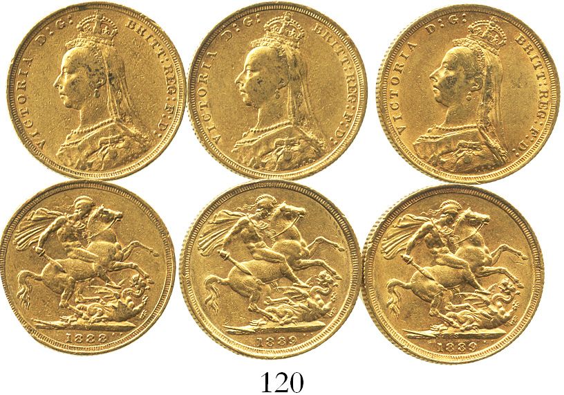 Lot of 3 Sydney, Australia, sovereigns, Victoria (jubilee head), various dates: 1888 and 1889 (2).