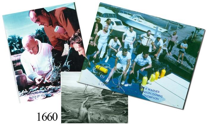 Lot of 3 color photos of Kip Wagner, Mel Fisher, the Real Eight Co. and their museum in Cape Canaveral. Each 10" x 8". Two new prints of classic color photos of Kip Wagner, Mel Fisher and the Real Eight Co. (including a different angle of the famous "group shot" on the back of the dust jacket for the Pieces of Eight book), plus an old, original, black-and-white publicity photo from the Florida Development Commission of a diorama in the Real Eight museum in Cape Canaveral.