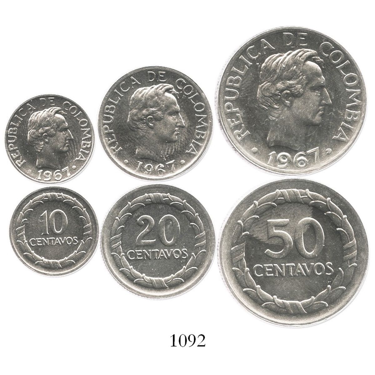 Lot of 3 nickel-plated steel Proofs of 1967: 50c, 20c and 10c. R-page 283; KM-226-8. 9.1, 4.5 and 2.6 grams. A scarce (complete) set of virtually flawless Proofs, all 3 with traces of fingerprints (always use gloves!).