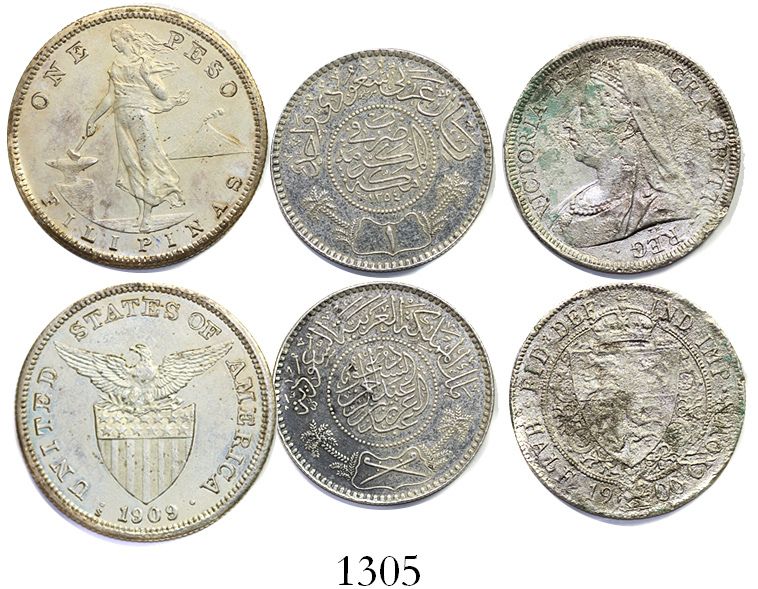 Lot of 3 silver coins from 1900s wrecks/salvages: Elingamite (1902), "Manila Bay" (1942) and SS John Barry (1944). 44.64 grams total. All solid coins, the Elingamite piece corroded but the other two pristine. The two shipwreck coins with generic certificates from the salvagers, and the Manila Bay coin pedigreed to our Auction #9, with original lot-tag #1008. Recovered from: Miscellaneous wrecks