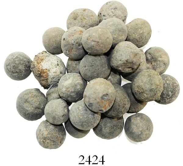 Lot of 30 lead musketballs. 729 grams total. Typical lead balls of various sizes, great for resale or small gifts. From the Capitana, sunk in 1654 off Chanduy, Ecuador, with 30 ROBCAR photo-certificates.