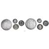 Lot of 4 Guatemala pillar issues in various denominations: 8R 1757J; 1R 1754P; 1R 1760P; 1/2R 1759G. 33.00 grams. Fine on average, mostly toned, but all holed except for the 1/2R.