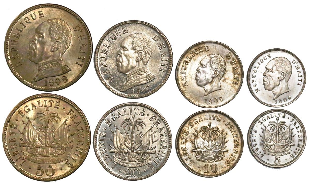 Lot of 4 Haitian copper-nickel minors: 5 centimes 1905, 10 centimes 1906, 20 centimes 1907, and 50 c