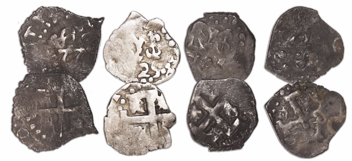 Lot of 4 Lima, Peru, cob 1/2R, 1725, Louis I, rare.