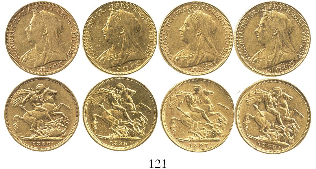 Lot of 4 Melbourne, Australia, sovereigns, Victoria (veiled head), various dates: 1895, 1897, 1899 a