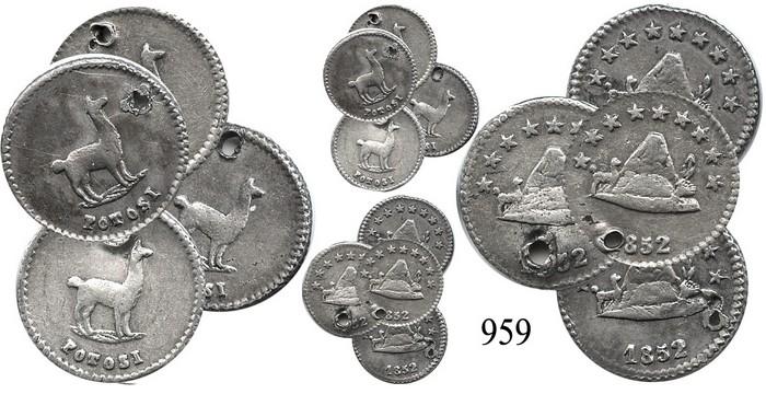 Lot of 4 Potosí, Bolivia, ¼ soles, 1852.