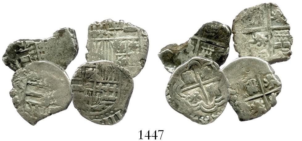 Lot of 4 Potosi, Bolivia, small cobs (three 1R and a "broken" 2R), Philip IV, assayers not visible.