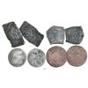 Lot of 4 miscellaneous coins: two Mexican cob 8R Philip V, one French 1/2 ecu Louis XV, and one Portuguese copper 10 reis Joao V. 73.33 grams total. The highlight here is the cobs, which are both solid (one worn, the other slightly corroded, both darkly toned), the Portuguese coin worn but not corroded, and the French coin almost featureless, interesting assortment from a wreck that just has not yielded much (yet). Recovered from: Unidentified late-1700s wreck in the English Channel
