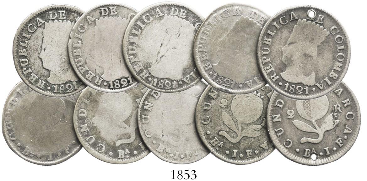 Lot of 5 Bogota, Colombia (Cundinamarca), 2R, 1821JF, with Ba.