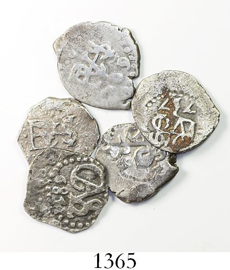 Lot of 5 Lima, Peru, cob 1/2 reales of Charles II and Philip V, various dates.
