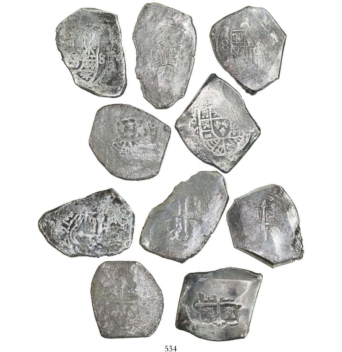 Lot of 5 Mexico City, Mexico, cob 8 reales, Philip V, assayer not visible (J).