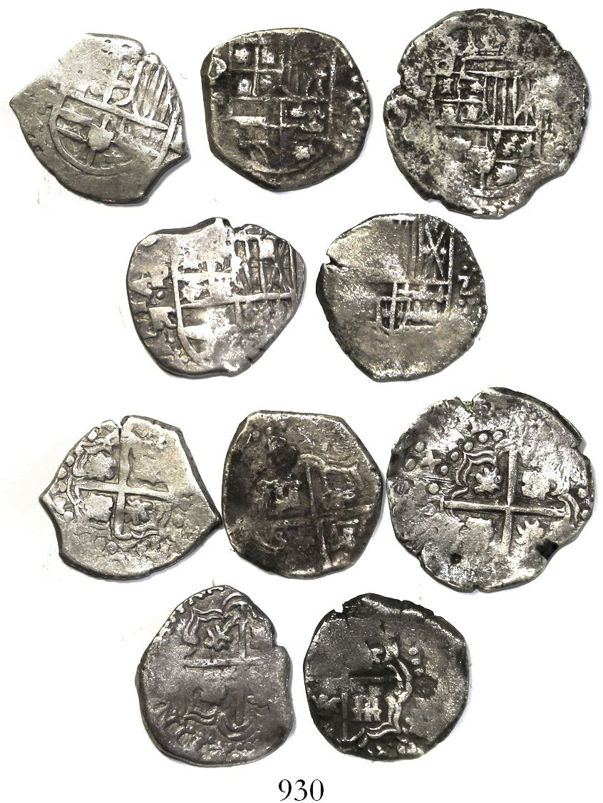 Lot of 5 Potosi, Bolivia, cob 2 reales, Philip IV, various assayers (where visible).