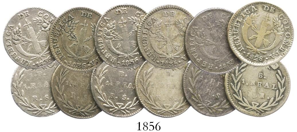 Lot of 6 Bogota, Colombia, 1R: 1828RR, 1833RS, 1835RS, 1836RS (3).