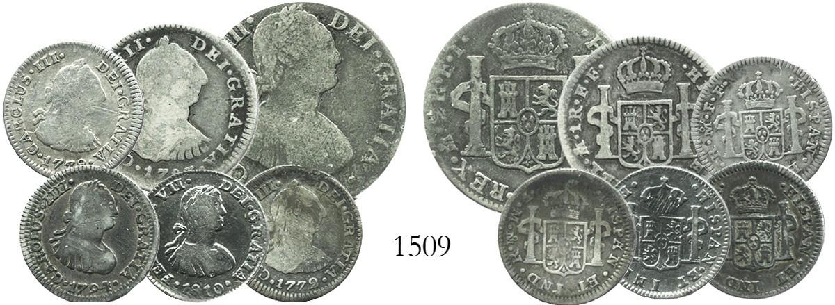 Lot of 6 Mexican bust minors: 2R 1803FT, 1R 1783FF, 1/2R 1772FM, 1/2R 1779FF, 1/2R 1794FM, and 1/2R