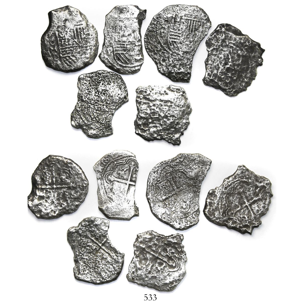 Lot of 6 Mexico City, Mexico, cob 8 reales, Philip IV, assayer P (where visible).