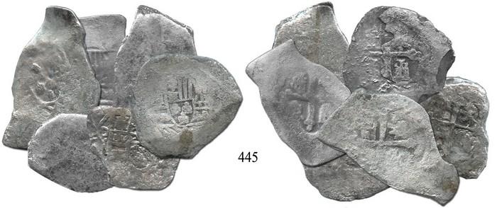 Lot of 6 Mexico City, Mexico, cob 8 reales, Philip V, assayers not visible.