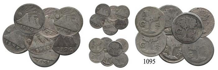 Lot of 7 Guatemala, Central American Republic, ¼ reales, 1826, 1831 (2), 1837, 1840/30, 1842/29 and 1844. KM-1. 0.7 to 0.8 gram each. Very competent lot of average-grade coins (Fine to VF), a few with minor flaws, mostly nicely toned.