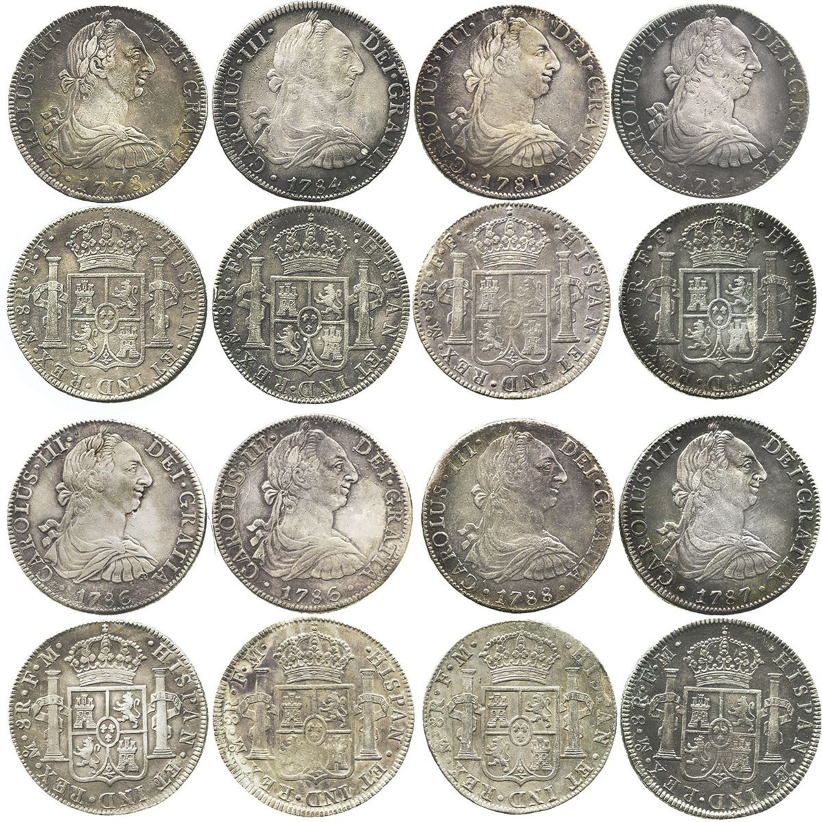 Lot of 8 Mexico City, Mexico, bust 8 reales of Charles III: 1778FF, 1781FF (2), 1784FM, 1786FM (2),