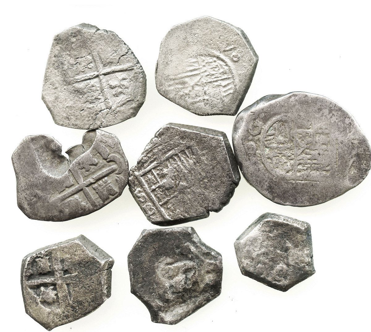 Lot of 8 Spanish (Seville or mints uncertain) cob 2 reales of the 1600s.