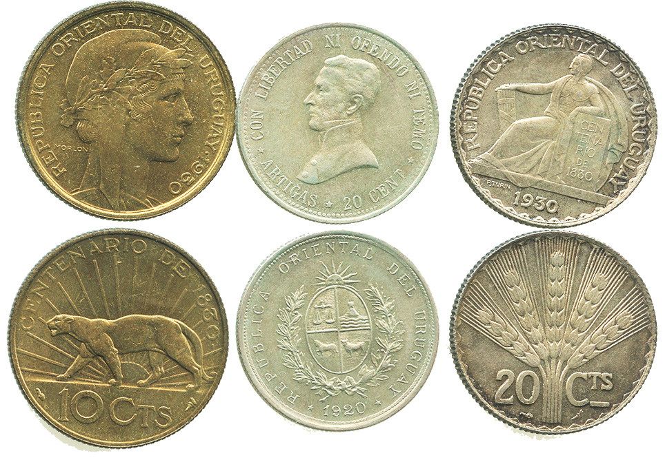 Lot of Uruguay minors: 20 centesimos 1920 and 1930; aluminum-bronze 10 centesimos 1930. 18.0 grams total. AU to Mint State, mostly lustrous, nice mix of metals and denominations.