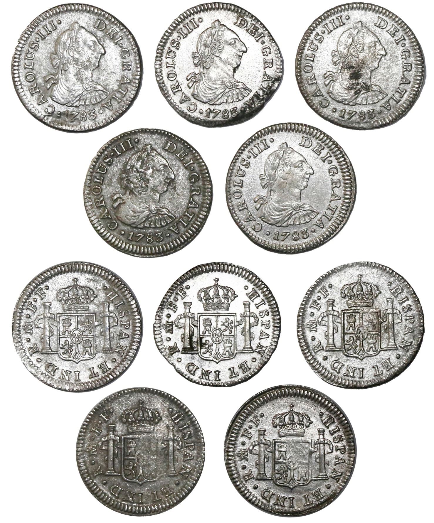 Lot of five Mexico City, Mexico, bust 1/2R, Charles III, 1783FF.