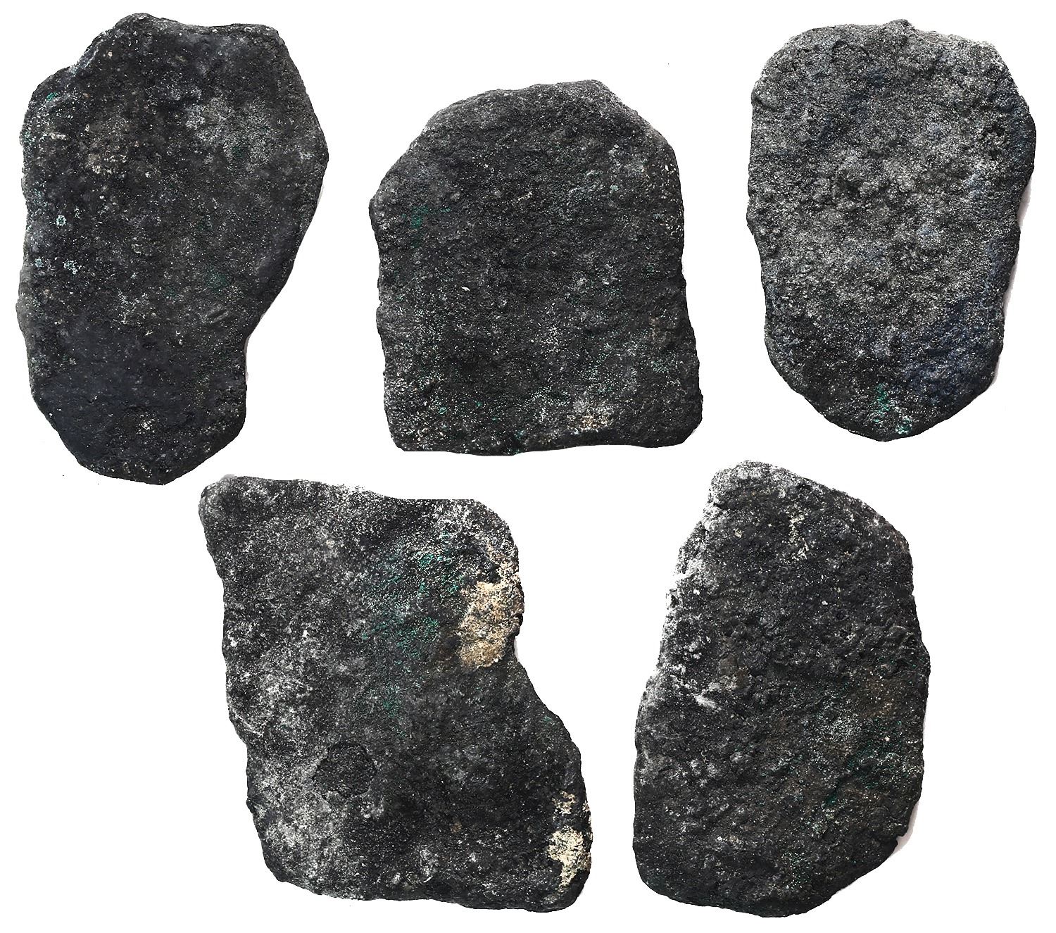 Lot of five cob 8R "blackies" (oxidized, as found), probably Mexican, Charles II and/or Philip V. 88.57 grams total. Thick, puffy surfaces with heavy black encrustation. From: Spanish 1715 Fleet, east coast of Florida