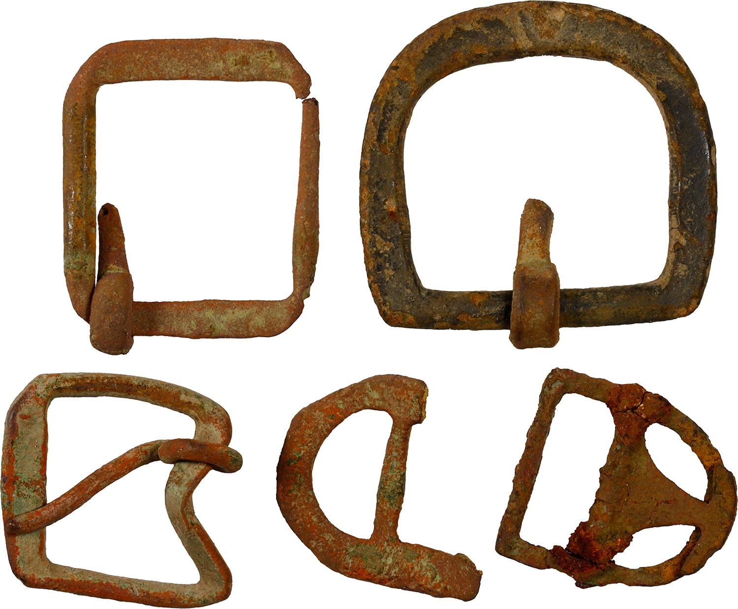 Lot of five small, cuprous buckles, ex-Scipion (1782).