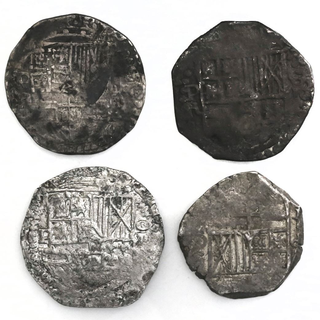 Lot of four Potosi, Bolivia, cob 8 reales, Philip III, assayers R (curved leg) and T.