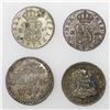 Lot of four Spanish bust-type 1/2R: Madrid, 1781/0PJ; 1789 proclamation; Madrid, 1793MF; Madrid, 1833AJ. 6.12 grams total. Higher grade than average, between XF and AU, some with luster, most toned, no problems.
