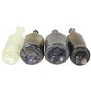 Lot of four bottles: Two black-glass ales and one cylinder, 1750-90, plus one clear milk bottle, ca. 1850. 927 grams, 9" tall, 3-3/4" in diameter; 702 grams, 9-1/2" tall, 3-1/2" in diameter; 670 grams, 11" tall, 3" in diameter; 585 grams, 12" tall, 3" in diameter. Four bottles: one a very heavy, dark green/black glass pontiled ale bottle with lots of evenly distributed old scratch marks; the second a lighter green/black glass shallow-pontiled ale bottle with irregular as-made surface and rough surface lip; the third a tall dark green/black glass pontiled ale bottle with signs of encrustation on lid and bottom, smooth surface and small pieces of encrustation inside, minor crack near top; and the fourth a translucent tall glass bottle with open pontil, ten ridges 4" long from neck down, the shoulders and large lip clearly showing how it was attached to the body. All completely intact and a great starter collection.