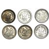 Lot of six Guatemala 1/2R: 1878, small date, no fineness; 1879, 0.835 fineness; 1879D, seated Justic