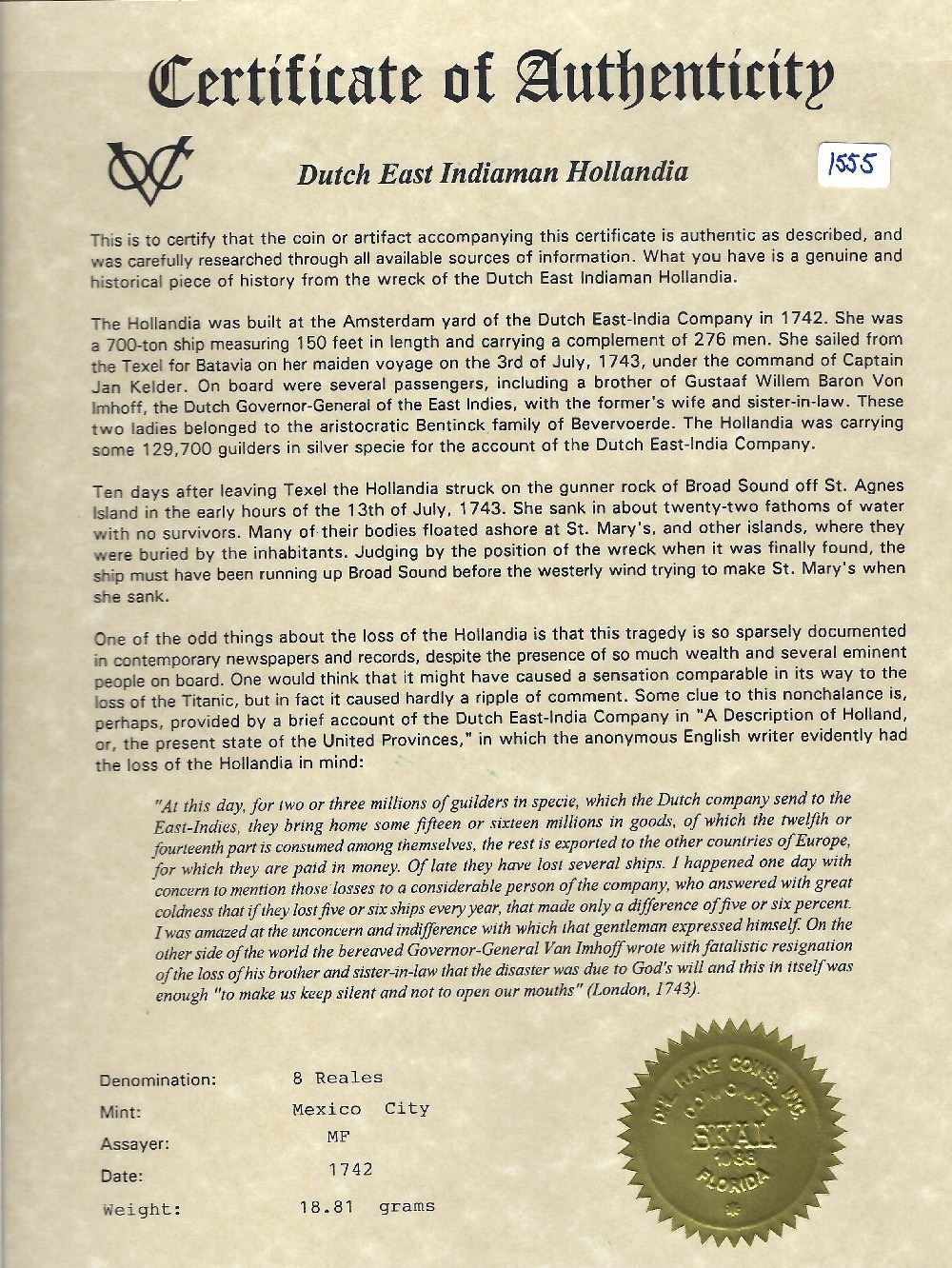 Currency:USD Category:Coins & Paper Money / Shipwreck - Silver Coins 1660s-1740s Start Price:180.00 USD Estimated At:250.00 - 375.00 USD