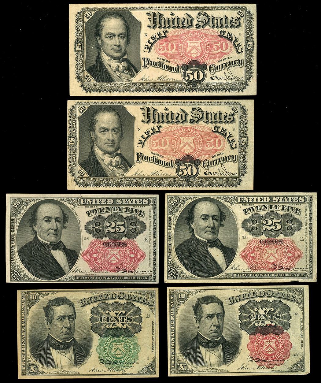 Lot of six USA (Washington, D.C.) fractional notes, 5th issue, 1874.