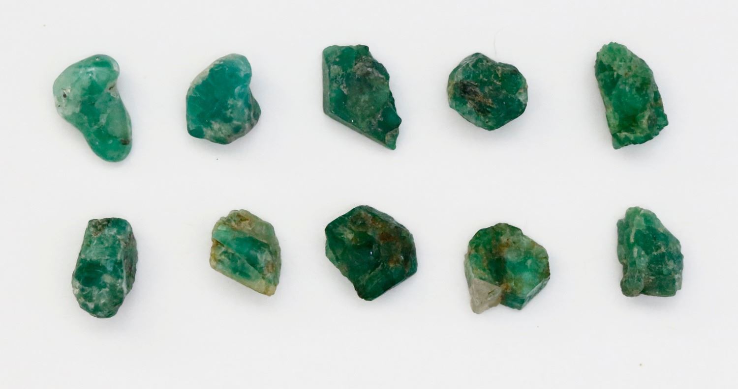 Lot of ten natural emeralds, 1-2 carats each.