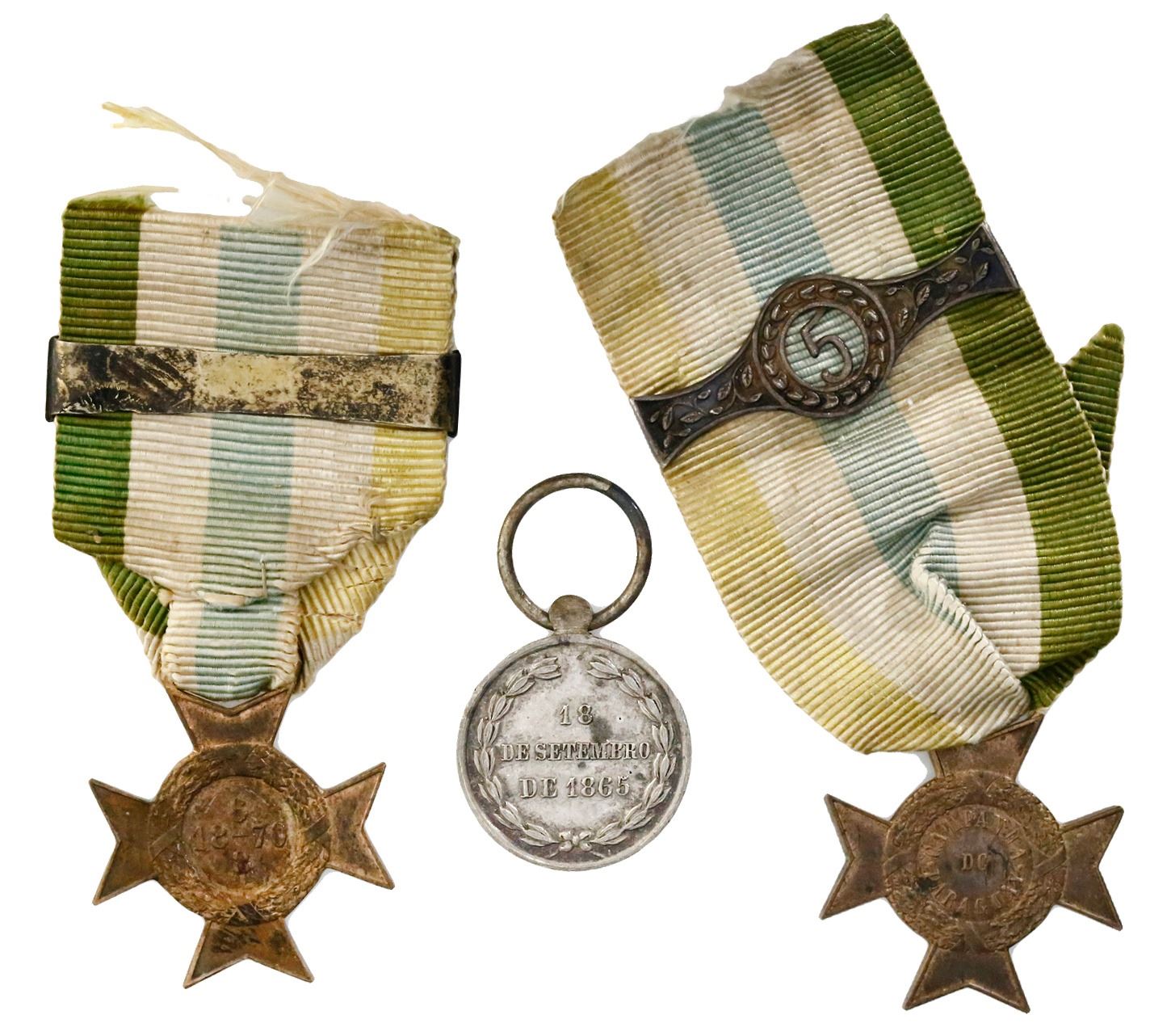 Lot of three Brazil military medals, War of the Triple Alliance: silver  Uruguayana,  1865; star cro
