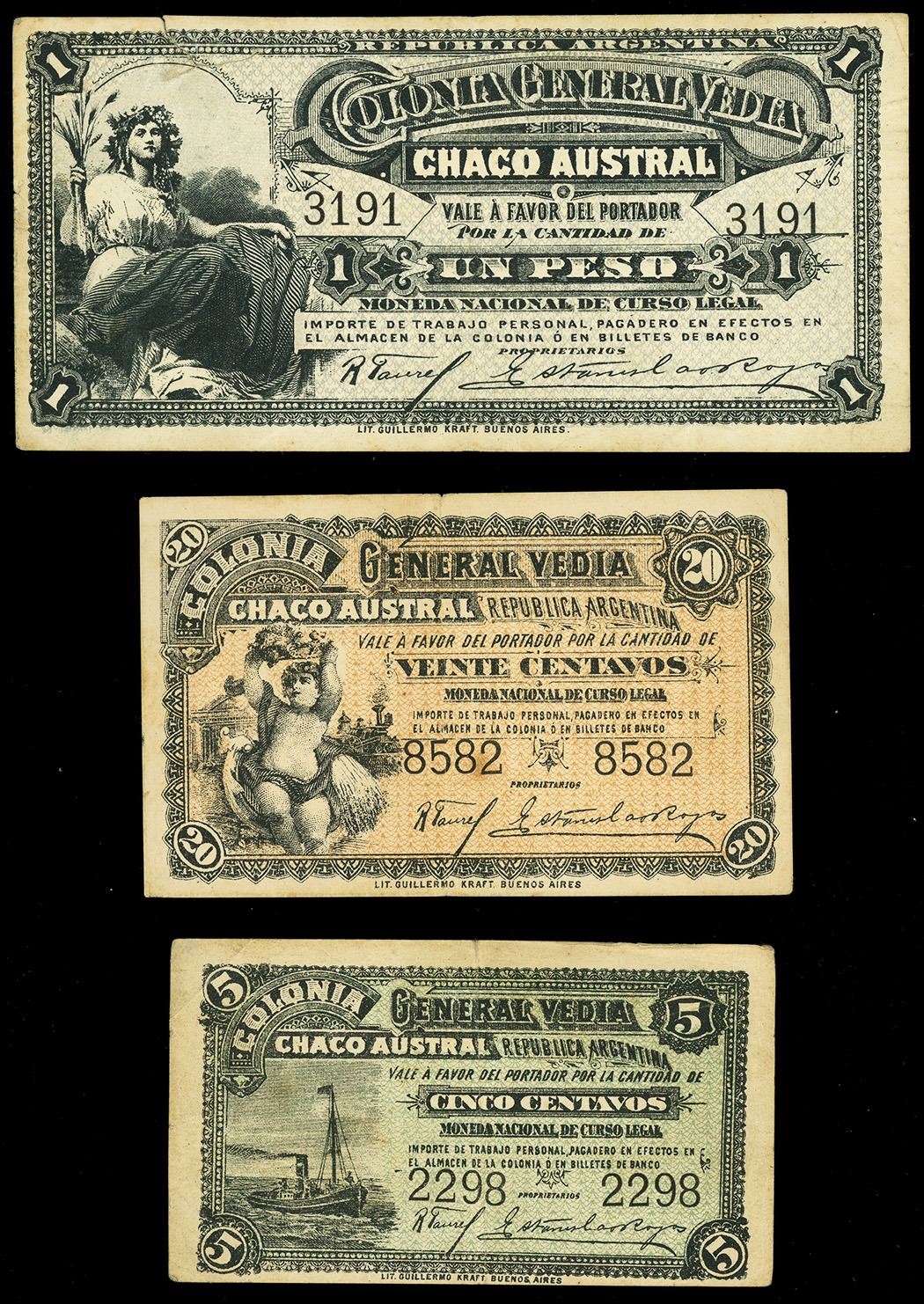 Lot of three General Vedia, Chaco, Argentina, Colonia General Vedia, notes, (ca. mid-1800s): 1 peso,