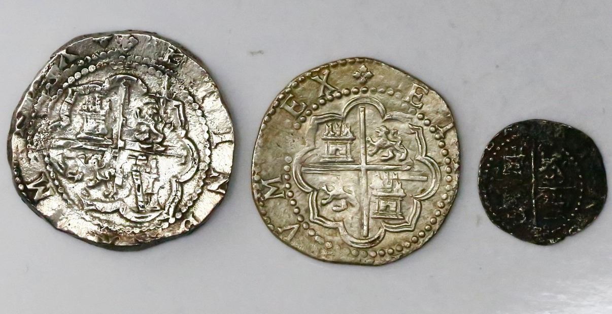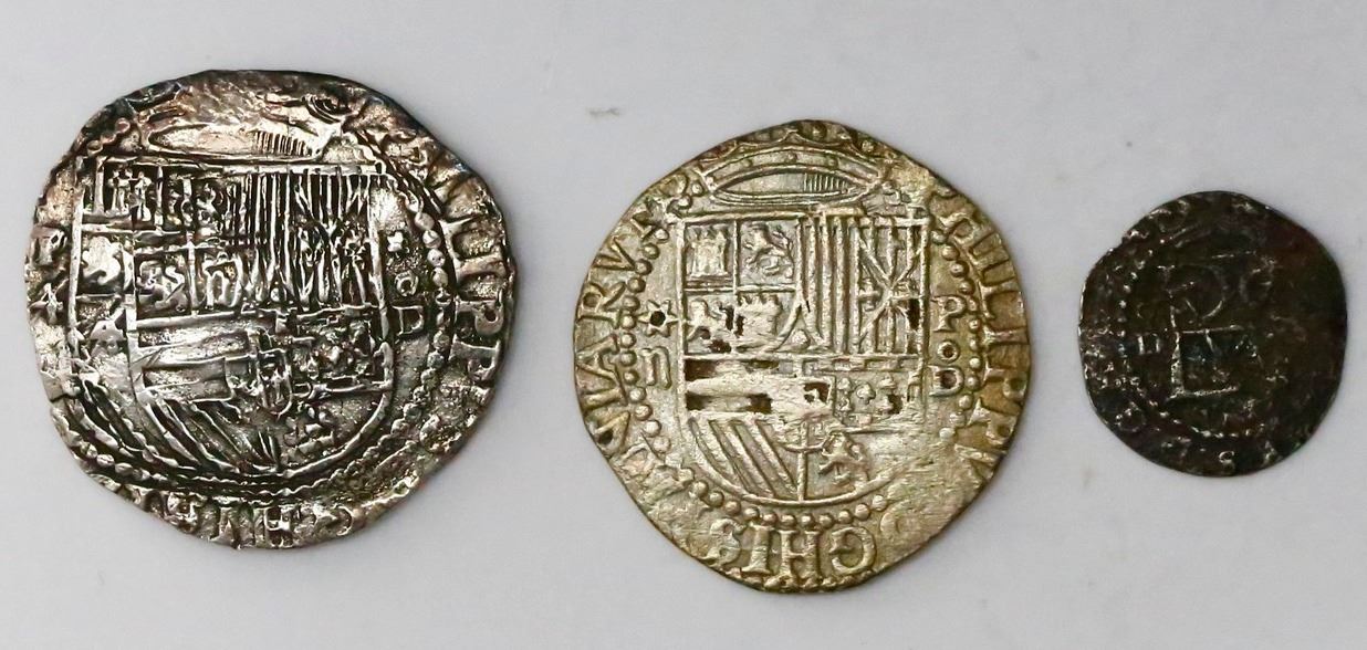 Lot of three Lima, Peru, cobs of Philip II, assayer Diego de la Torre (one 4R, one 2R and one 1/2R). 21.07 grams total. VF-XF, the 4R polished and retoned (with doubled cross), the 2R with light surface corrosion and the 1/2R thin and dark from salvage, yet all three with nice details per the issue.