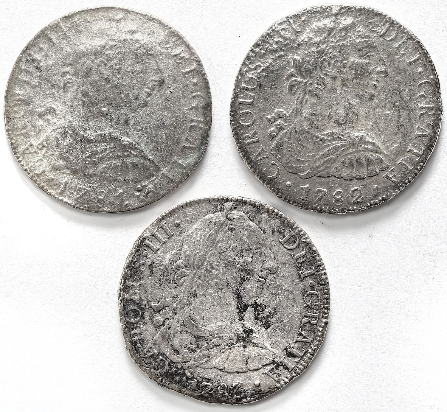 Lot of three Mexico City, Mexico, bust 8 reales, Charles III, assayer FF, dated 1781, 1782 and 1783,