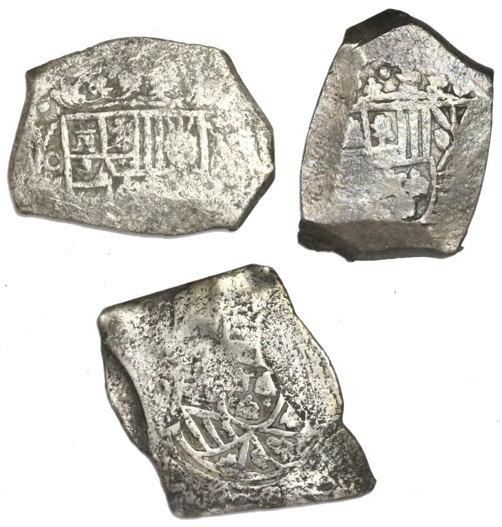 Lot of three Mexico City, Mexico, cob 8 reales, Philip V, assayers not visible.