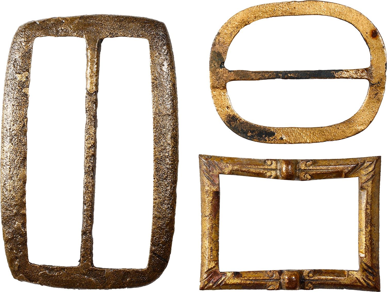Lot of three brass buckles, ex-Guadalupe-Tolosa (1724).