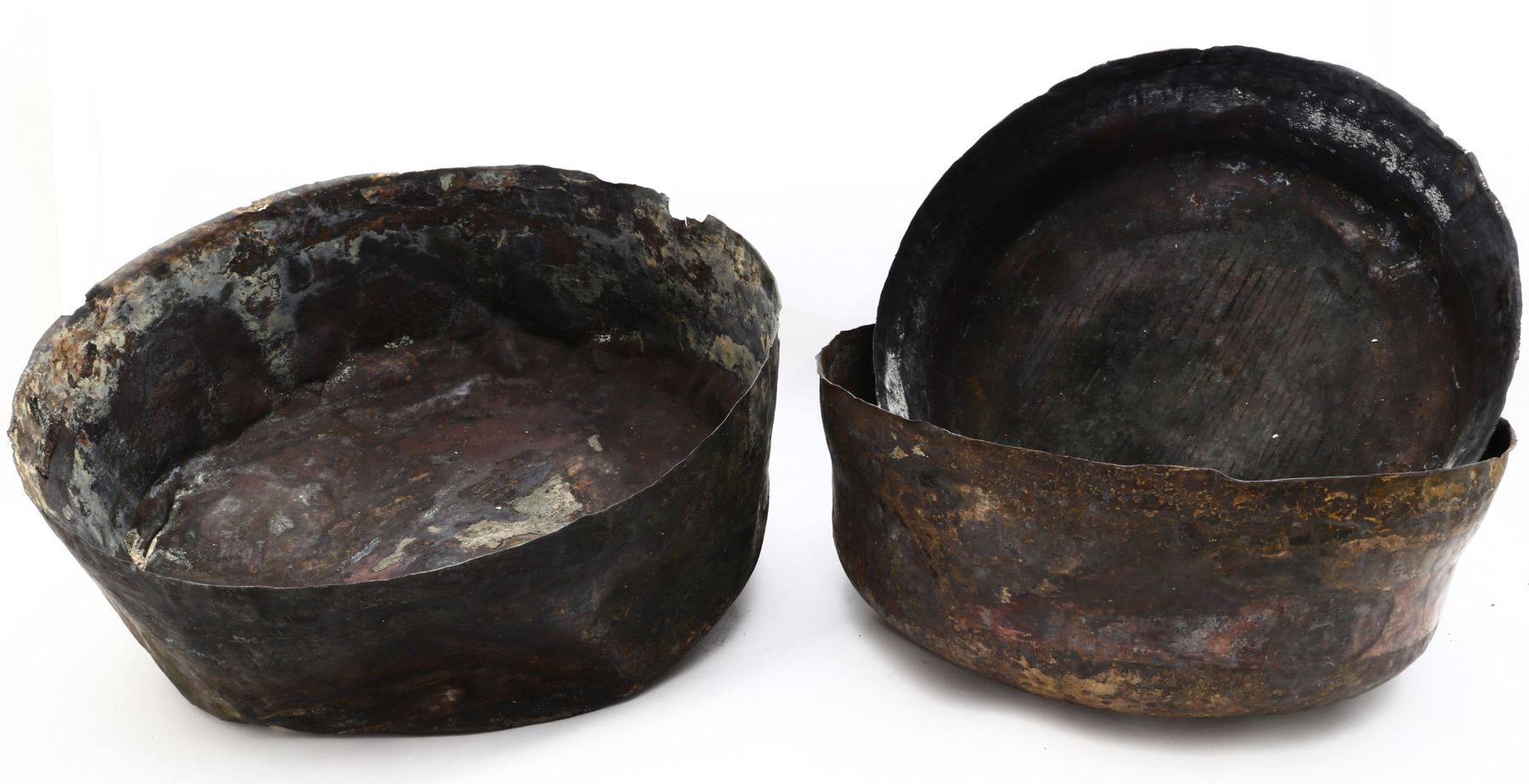 Lot of three large copper bowls (nesting), ex-"Pewter Wreck" (mid-1500s).