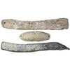 Lot of three lead sounding weights from the Tilbury (1757). 3464 grams and 11-1/2" long, 1769 grams and 5-1/2" long, and 2336 grams, and 12" long. Three heavy gunmetal-gray sounding weights with lightly encrusted exteriors, one a square shape tapering to an end with a hole, another more rectangular with taper sans hole, and the third (smallest) an oval on one side and flat on the other with each end holed. From the Tilbury (1757), with original certificate from the consignor.
