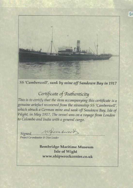 Lot of two Calcutta, British India, 10 rupees, 25-1-1916, series AC 48, serials 80368 and 80369, laminated with wreck information. SCWPM-A10f. Partially intact (~50%) with light staining and circular degradation pattern (typical), with full serials. With certificate from the salvager. Recovered from: Camberwell, sunk in 1917 off Isle of Wight, south of England