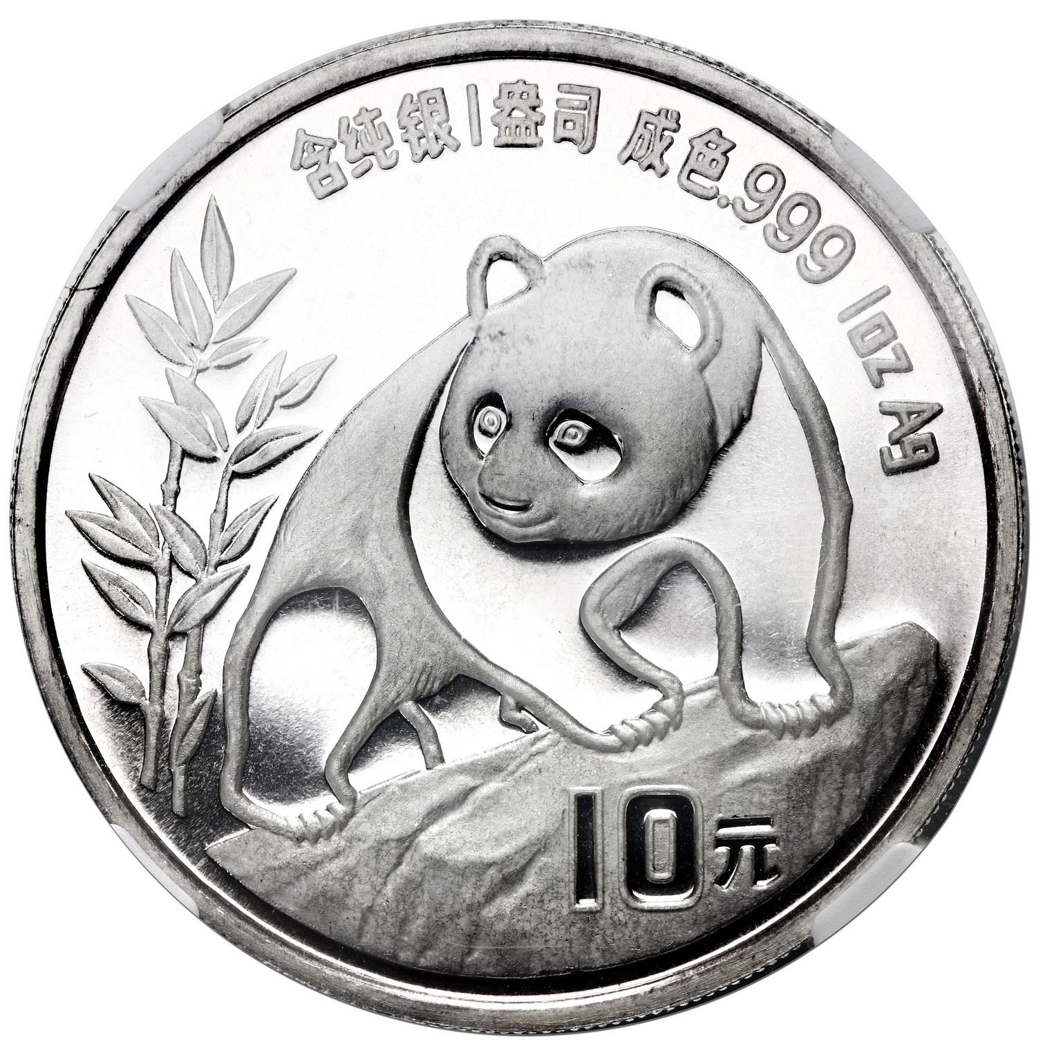 Lot of two China (People's Republic), silver 10 yuan (1 oz) Pandas, 1990, small and large date varie