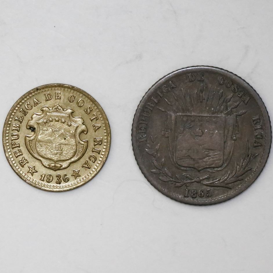Lot of two Costa Rica minors: 10 centavos, 1865GW; 5 centimos, 1936.
