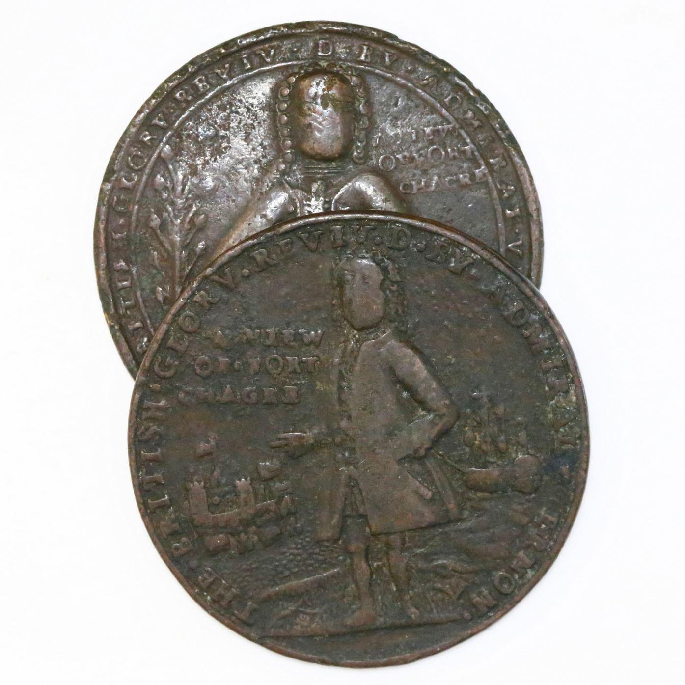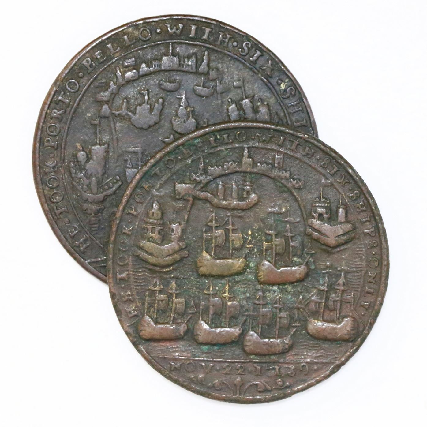 Lot of two Great Britain copper-alloy medals of Admiral Vernon, 1739, Porto Bello / Fort Chagre.