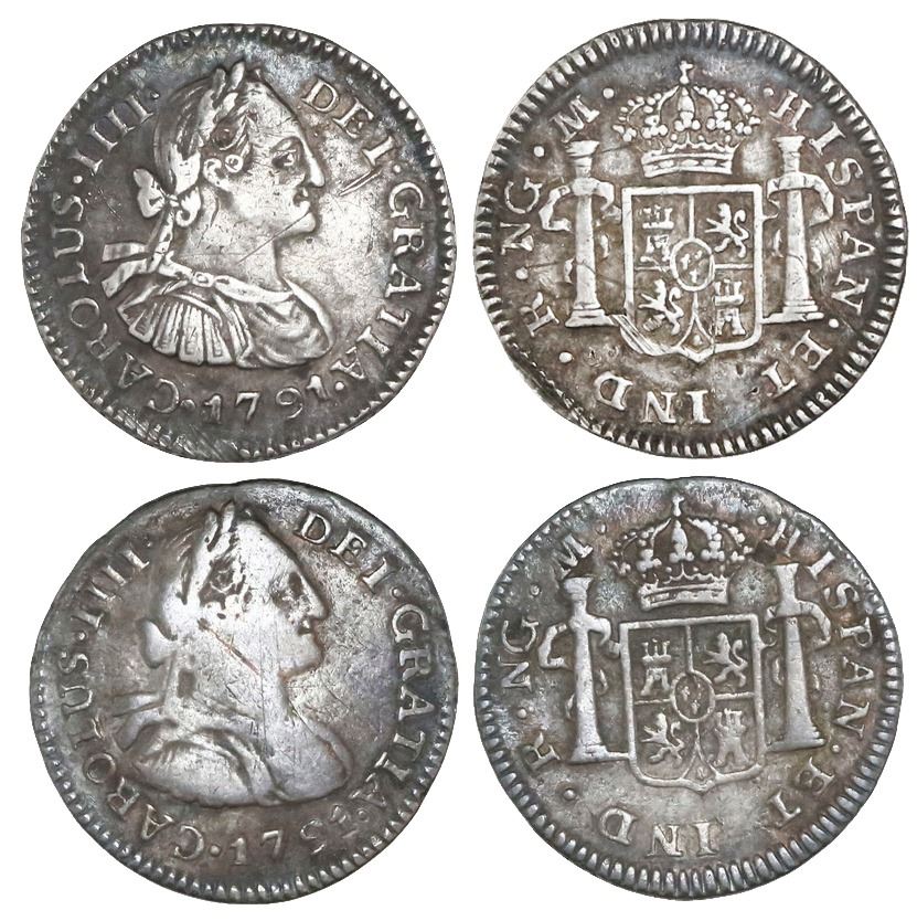 Lot of two Guatemala bust 1/2R, Charles IV, 1791M.